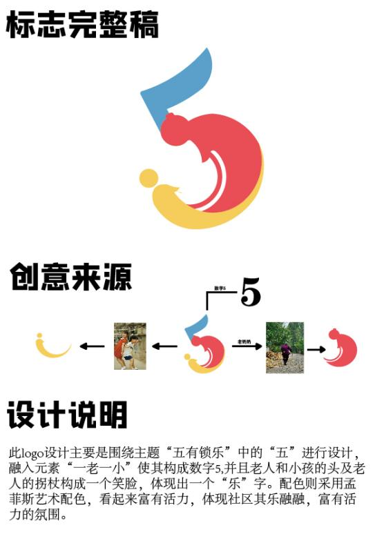 锁五社区依托党建联盟单位资源,打造特色党建品牌“‘五’有‘锁’乐”,把“一老一小”事业作为暖民心、解民忧的重点民生工程。“在实践中深入挖掘社区元素,让设计赋能基层社会治理。”视觉传达设计系王颖老师作为比赛指导教师,前期引导学生深入社区进行相关调研和考察,结合理论指导,真正从社区需求出发,做“接地气”的标志设计。