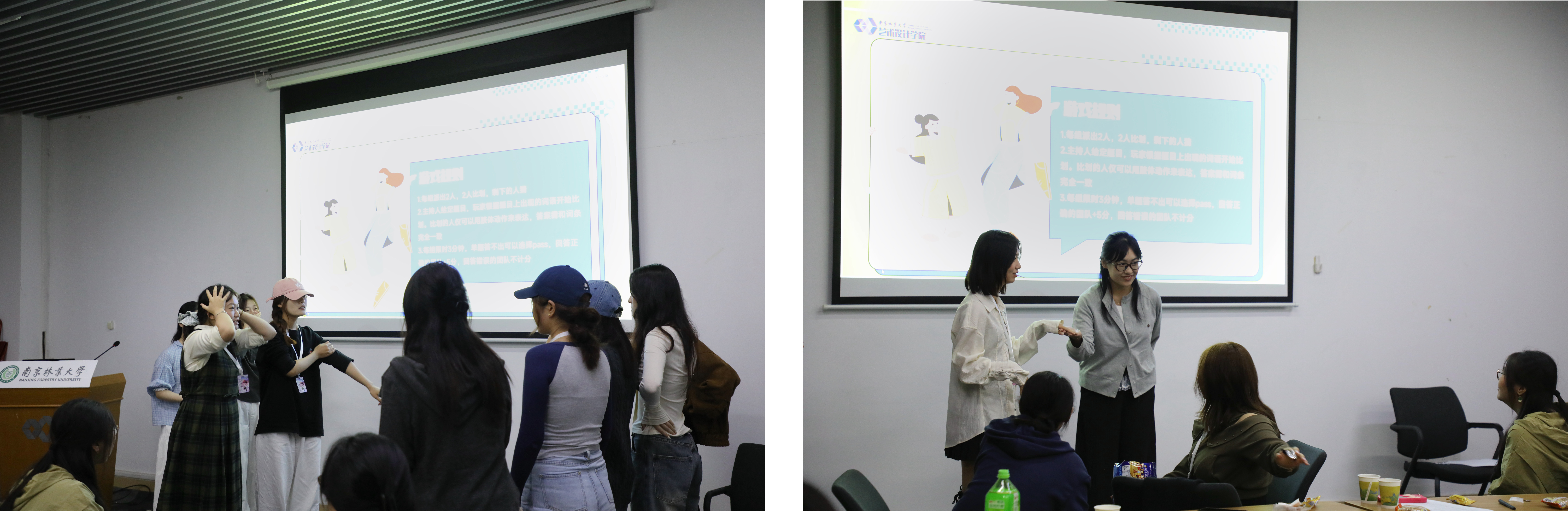各组热情饱满,团结互助,一边看题比划各种动作,一边脑洞大开猜谜,同学们通过团队协作“破译”了一个个肢体语言,不仅拉近了同学们之间的距离,更激发了同学们的创新创造能力。现场兴致高涨、欢笑声不绝于耳,每一组参赛选手无不为比赛胜利拼尽全力。