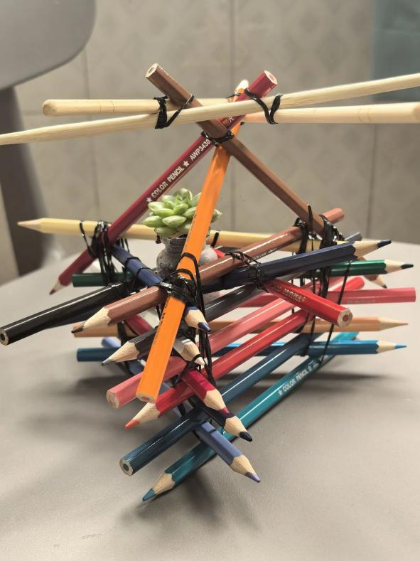 常文静、姚亦婷、潘婕、王淳瑾联合创作的作品《秋阅·时光亭》;周颖佳、王佳昱联合创作的作品《彩棱植架》:常鑫、蒋衍坤、程梓辛、方思雨、李中义联合创作的作品《拾木生花》;滕双、余梦玲、李海宁联合创作的作品《共生架构》;邵文思、杨婧佳、周舟联合创作的作品《旧木条改造秋千和植物置物架》获得本次大赛的二等奖,这些作品巧思串联多元主题,凭借细腻表达与环保内涵,赢得了众多喜爱与认可。