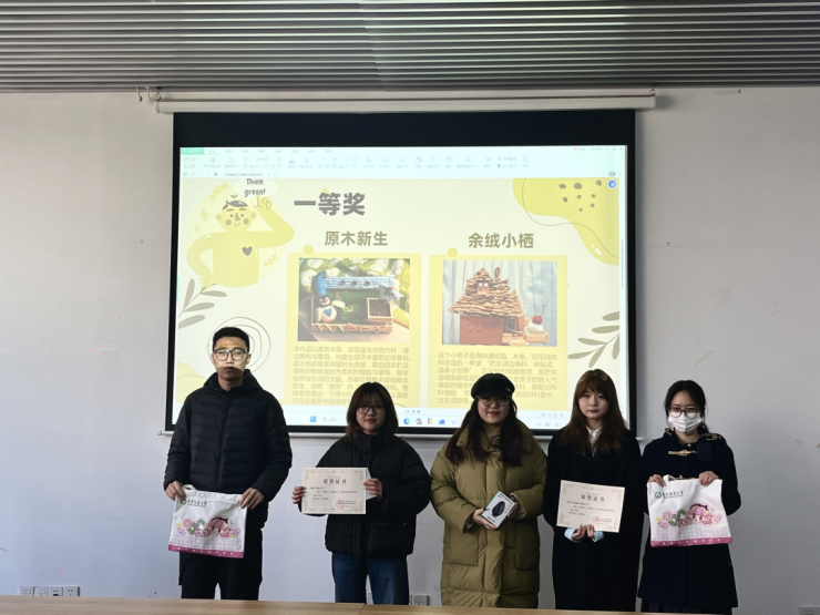 吴明珠、黄超同学合作的小组与徐子洋、朱美颖、徐思雨同学合作的小组分别凭借作品《原木新生》与《余绒小栖》中的巧思创意与视觉吸引力,收获了评委们的一致好评,在众多参赛作品中脱颖而出,摘得本次大赛的一等奖。