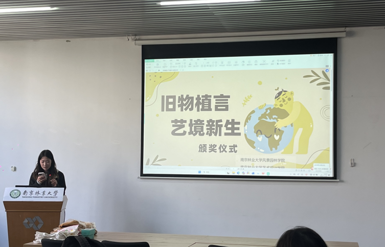 大赛从2025年11月28日至12月28日历时一个月,经方案设计、作品提交、线上投票、线下专家评审等多个环节。艺术设计学院与风景园林学院全体研究生踊跃参与,围绕多个环保主题创作出了许多富有创意的作品。经过线上投票和线下专家老师评审的严格筛选,最终评选出一二等奖作品共7件,并于12月26日在香樟苑201多功能报告厅举行了本次活动颁奖仪式,由学术部干事邓玉主持。