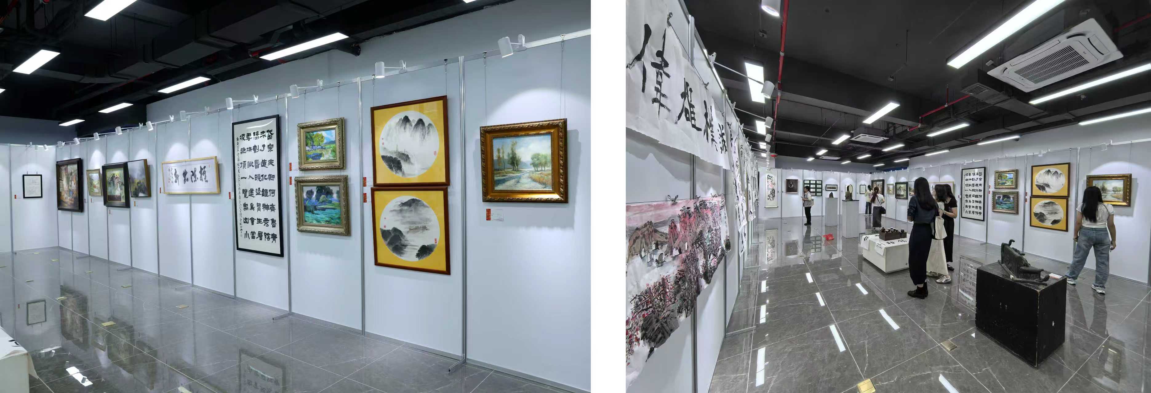 在现场,笔会书画家们挥毫泼墨,以笔墨丹青抒发对祖国壮美河山的赞美之情,以艺术创作迎接国庆佳节的到来;而“艺林融合”教师创作展则集中展示了我院教师在书法、油画、雕塑等多个艺术领域的创作成果。本次参加“艺林融合”教师创作展的教师有(以姓氏笔划排序):丁山、丁以涵、田晓冬、朱平、朱一、孙献华、孙鲁宁、李永昌、吴勇、厉群、周怡彤、明鑫、祝炜、钟华、徐雷、耿植荣、诸宁、曹磊、曹利芳、湛磊、彭俊、黄月娥。