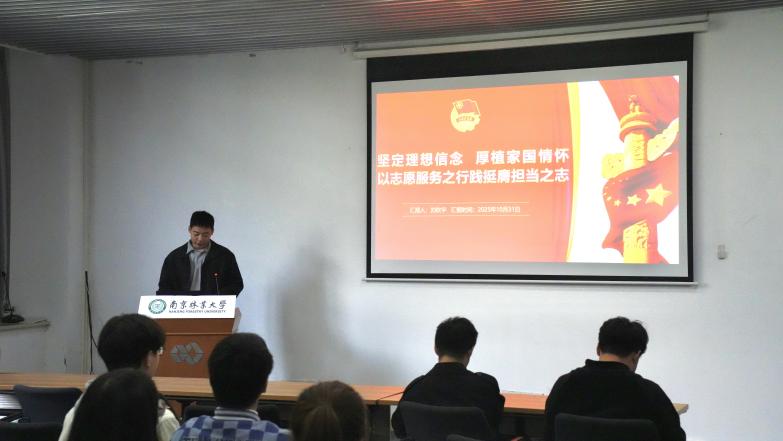 第一位分享嘉宾是理学院在读研究生刘钦宇学长,主要讲述关于一线志愿服务经历以及在省委工作中的成长感悟与宝贵经验。讲述围绕三个部分展开,第一部分:从认知到认同,在学思践悟中坚定理想信念,自觉学习党的创新理论,深入贯彻"两个结合"方针,筑牢信仰之基。第二部分:从认同到践行,在服务奉献中厚植家国情怀。他分享了在一年支教岁月中那些感人至深、终身难忘的故事,真实展现了志愿服务如何将个人理想融入祖国大地。第三部分:从践行到使命,在伟大事业中书协青春篇章。围绕新时代青年的责任,责任担当既是过硬本领的实践检验,也是接续奋斗的青春誓言,更是初心使命的时代答卷。