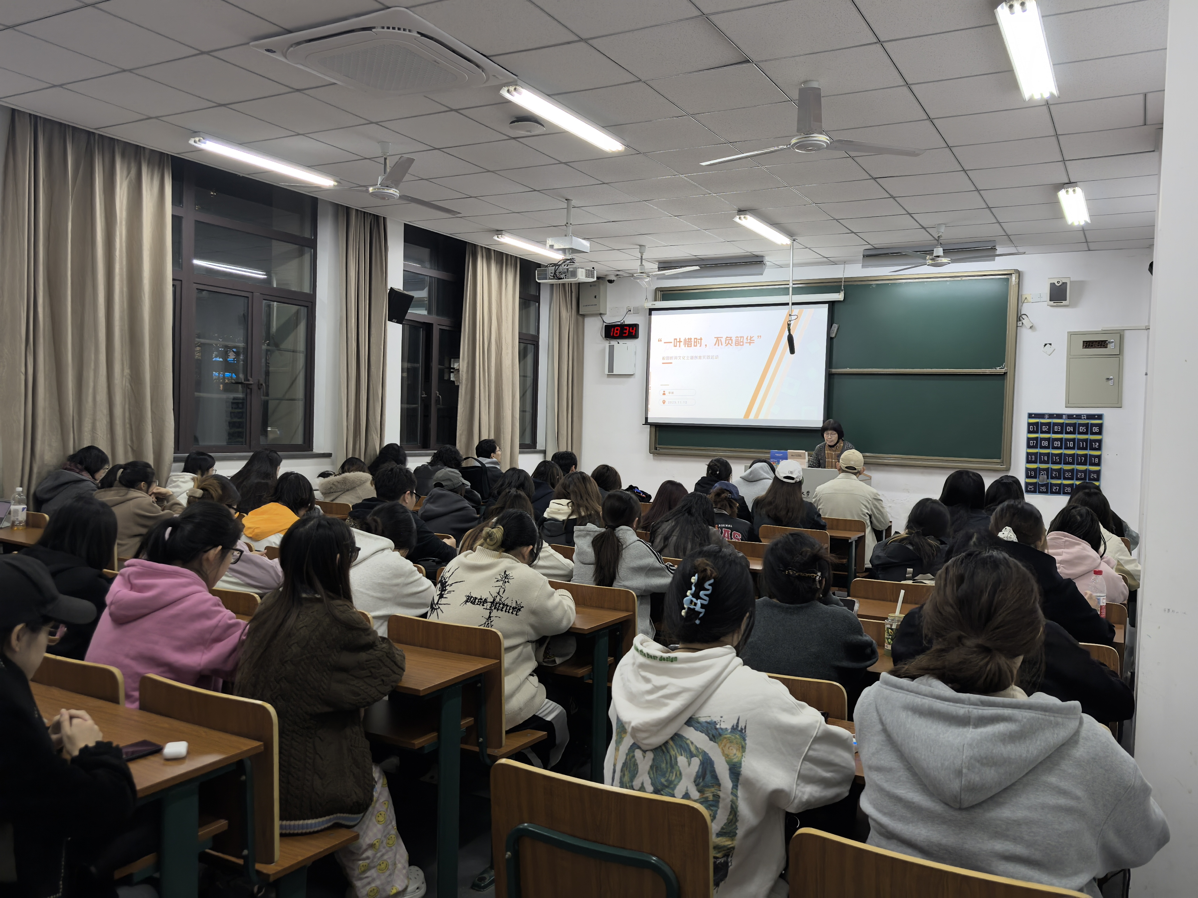 为创新新党员培养模式,推动党性教育与专业实践深度融合,11月12日,我院在教主楼0119教室举办“时间的设计学”主题党课,正式启动“一叶惜时 不负韶华”校园时间文化主题创意实践活动。本次活动以实践育人为导向,通过艺术创作方式引导新党员在服务校园文化建设中锤炼党性、践行使命。