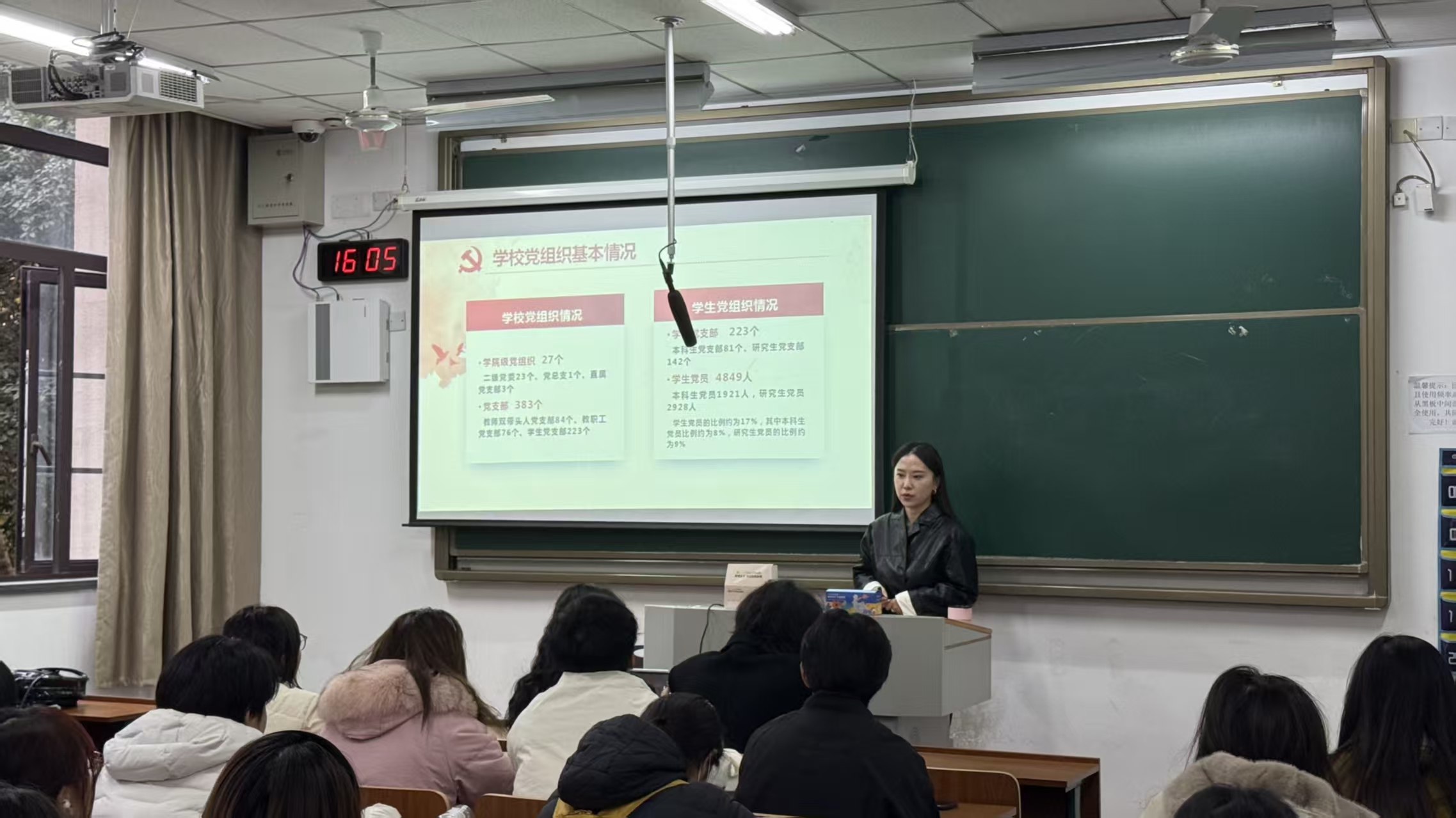 课上,胡潇潇首先介绍了我校党组织基本情况,深入阐释了“四个意识”的内涵。她以时间为线索,梳理了不同时期党员队伍的特点与使命——从革命战争年代的奋勇“冲锋”,到建设时期的无私“吃苦”,再到改革进程中的大胆“开拓”,直至新时代的自觉“担当”,指出党员始终是走在时代前列的先锋力量。她强调,全体新党员要将“四个意识”内化于心、外化于行,加强理论学习,对照标准找差距、明方向,锤炼党性,把坚定信念转化为服务群众、推动发展的实际行动,在工作中当先锋、作表率。