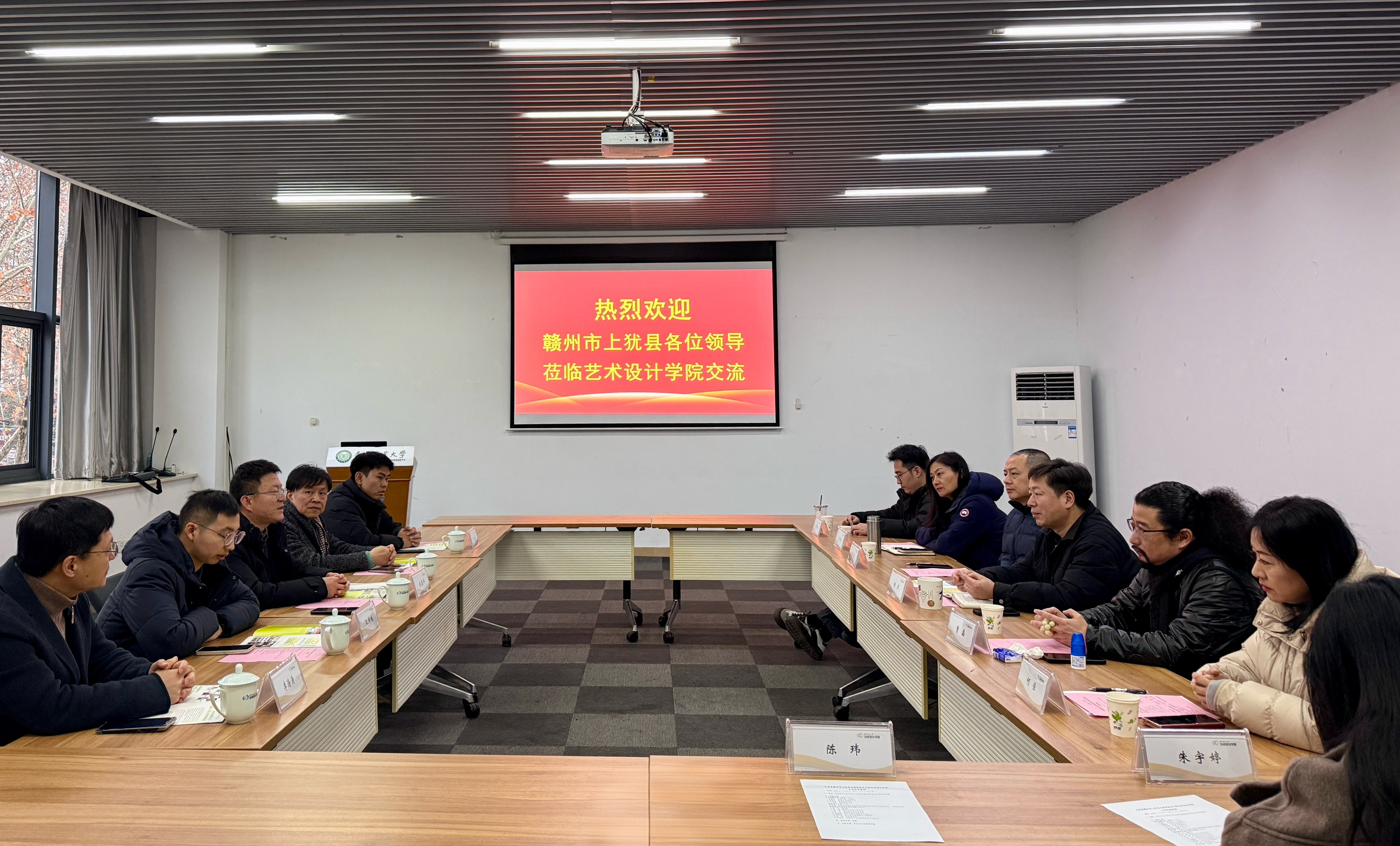 1月30日下午,江西省赣州市上犹县委常委、副县长赵鑫华一行莅临我院进行交流。我校机电产品包装生物质材料国家地方联合工程研究中心常务副主任李海涛、副主任李忠,我院副院长杨杰及景观艺术设计系、室内艺术设计系、视觉传达设计系、设计与社会创新中心、院办等相关负责老师参加座谈会。