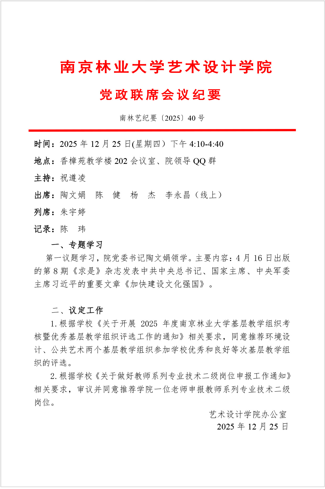 南京林业大学艺术设计学院党政联席会议纪要【2025】40号